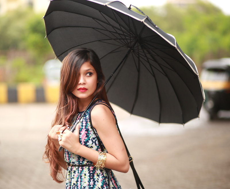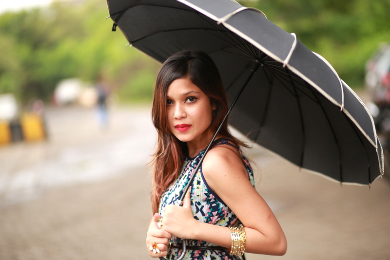 | Dress- MissaMore, Rings-LeGoldBox, Umbrella- Cupcake&Closet, Bag- 2 Am By Anjali & Meha, Rainywear Footwear- Westside |