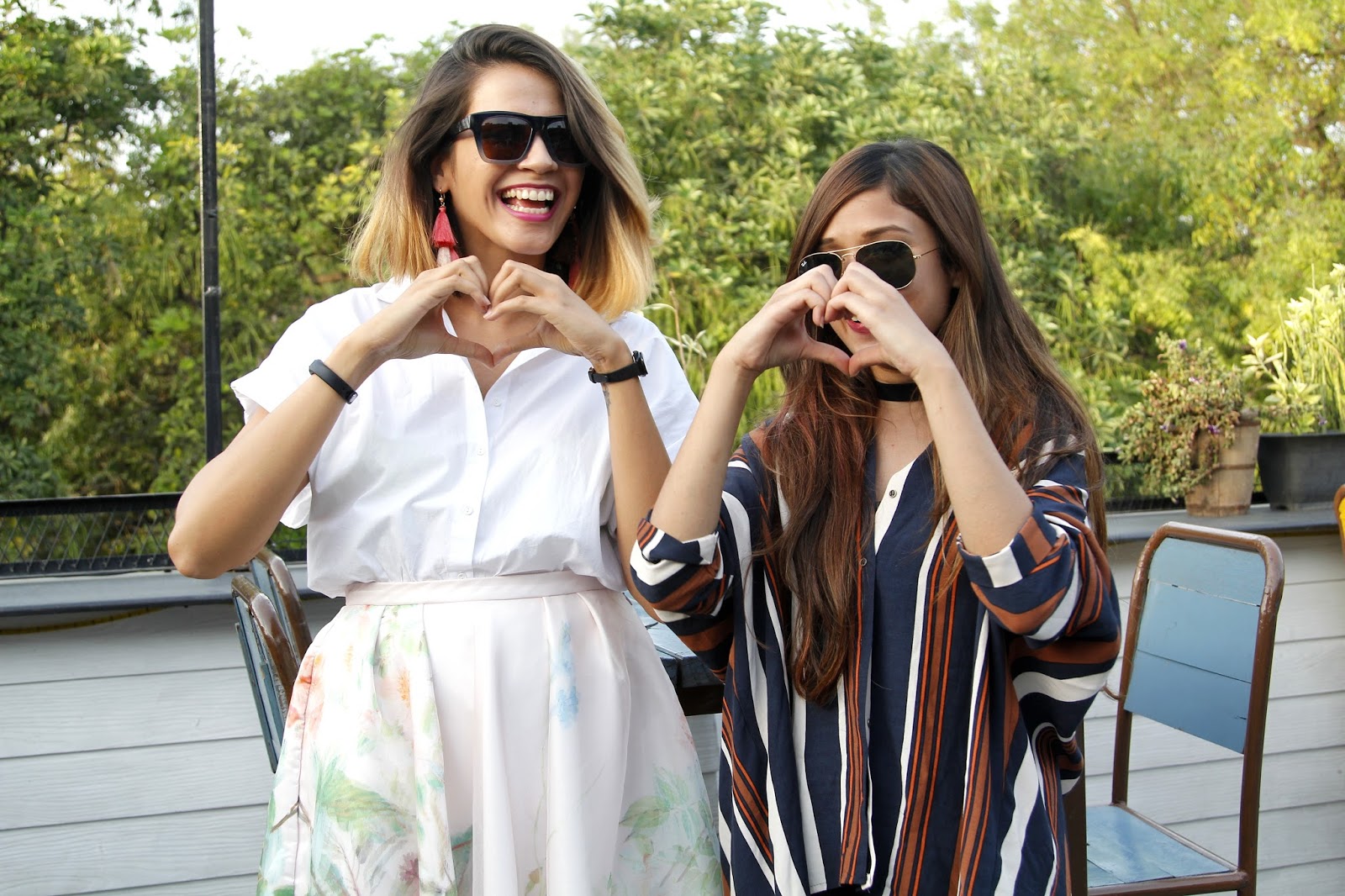 I was super excited to visit Delhi and was really looking forward to the event. The event took place at Summerhouse Cafe in Hauz khas. The environment there was very chilled out and I got to meet a couple of Delhi bloggers and one of them was Akanksha Redhu who made it comfortable! It was a fun set up and we had to style our designated models. I decided to go with two looks. One was a denim on denim look and made her don a pair of printed socks which added a bit of funk. The second look was totally a boho chic look. Decided to go with printed palazzo and a black top with it to keep it simple.