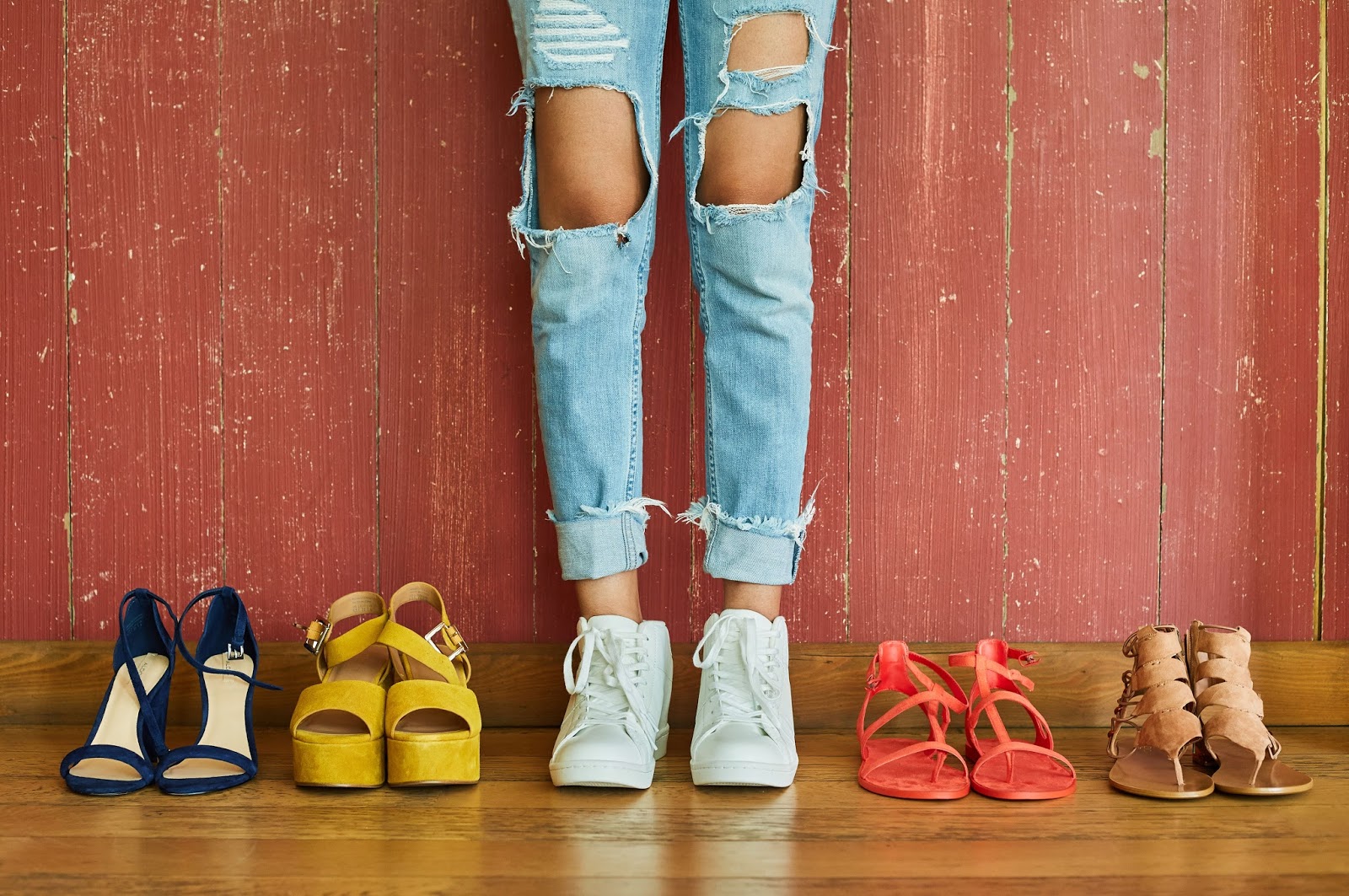 My 4th pair were these red colour flats. I just loved the colour and I agree this wouldn’t go with everything but who’d say no to some super cute flats? I styled these flats with my off shoulder watermelon crop top and shorts and dig the shoot.